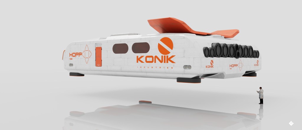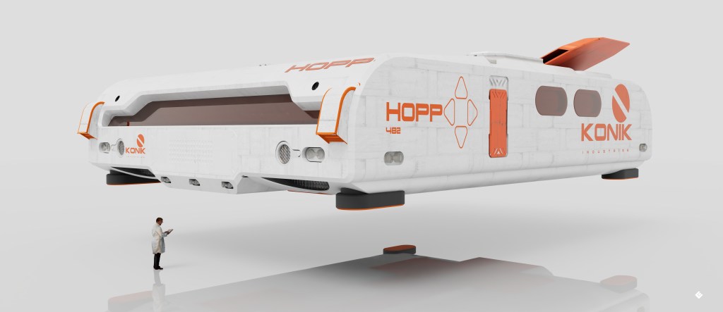 Hopp: medium range planetary vehicle. March 19, 2026 / coldesign ltd more from my Konik universe. this is Hopp, basically a planet taxi. Share this: Share on X (Opens in new window) X Share on Facebook (Opens in new window) Facebook Share on Reddit (Opens in new window) Reddit Share on Pinterest (Opens in new window) Pinterest Share on LinkedIn (Opens in new window) LinkedIn Share on Tumblr (Opens in new window) Tumblr Like Loading... Related